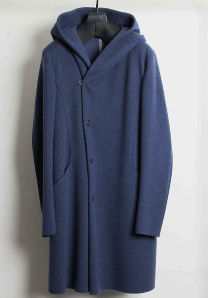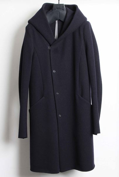 カシミヤ混ストレッチメルトン フーデッドコート。