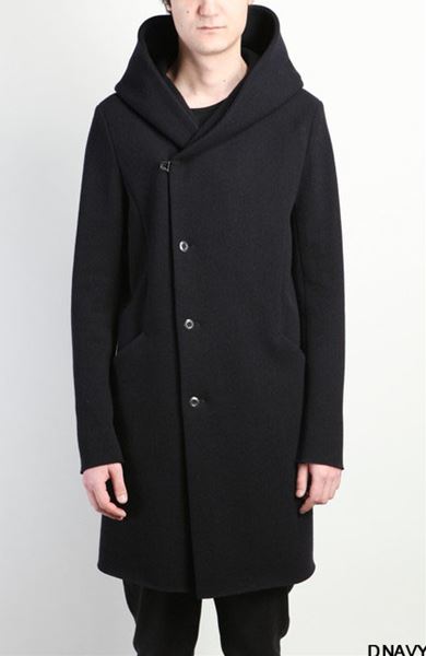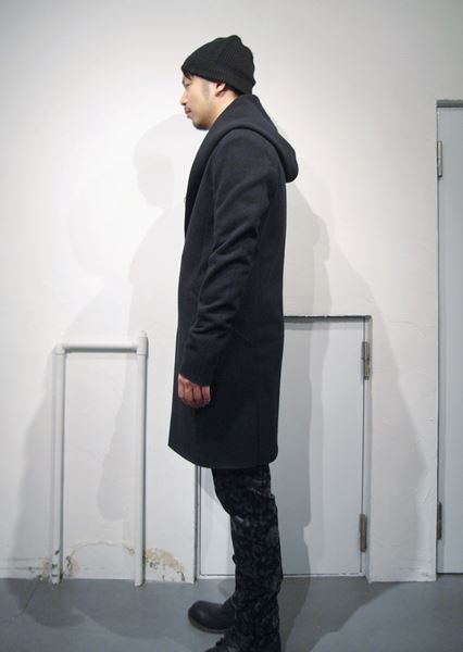 カシミヤ混ストレッチメルトン フーデッドコート