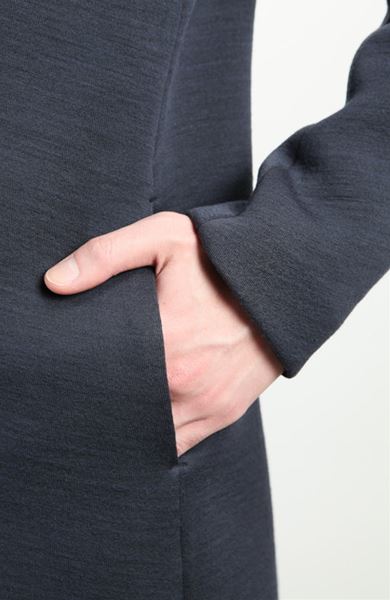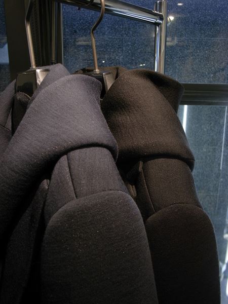 生地表面に若干ですがスラブ風の表情のある素材で、フード部分が前身頃の一部まで繋がっており、