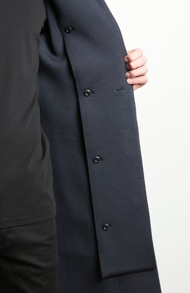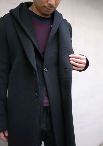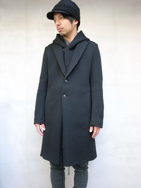 フードを外すとシンプルなチェスターコートのようなデザインになり
