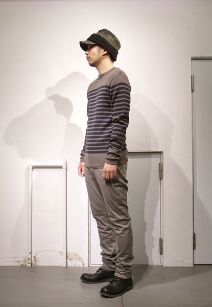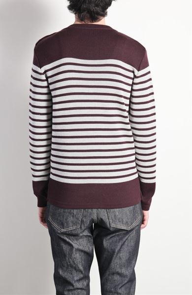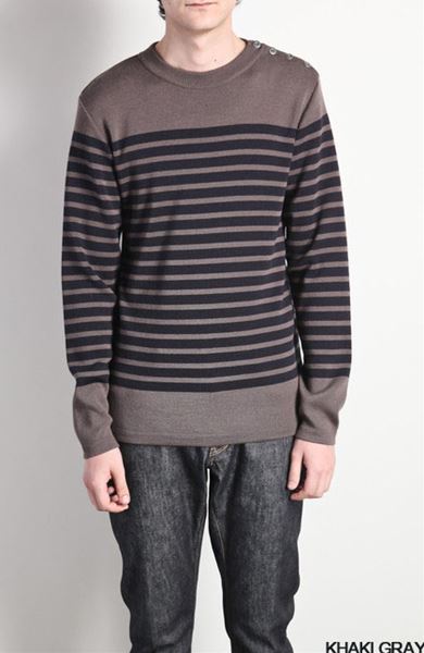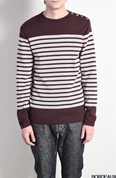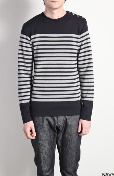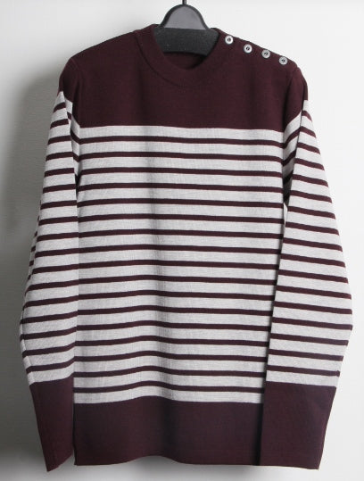 ウールフルニードルリブ ボーダークルーネックプルオーバー。