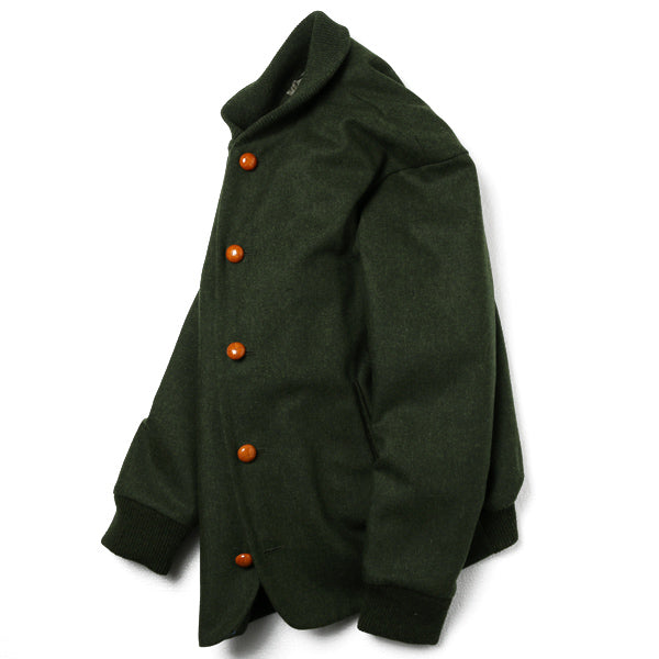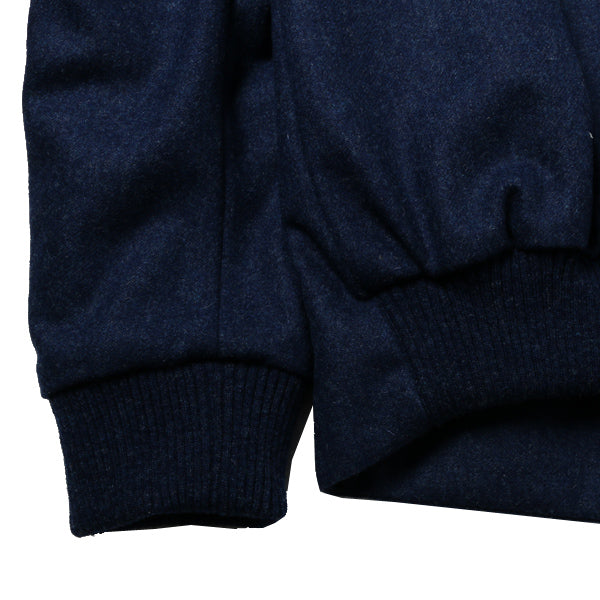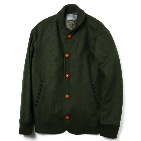 襟はスタジャン風に、フロント裾はややラウンドカット、