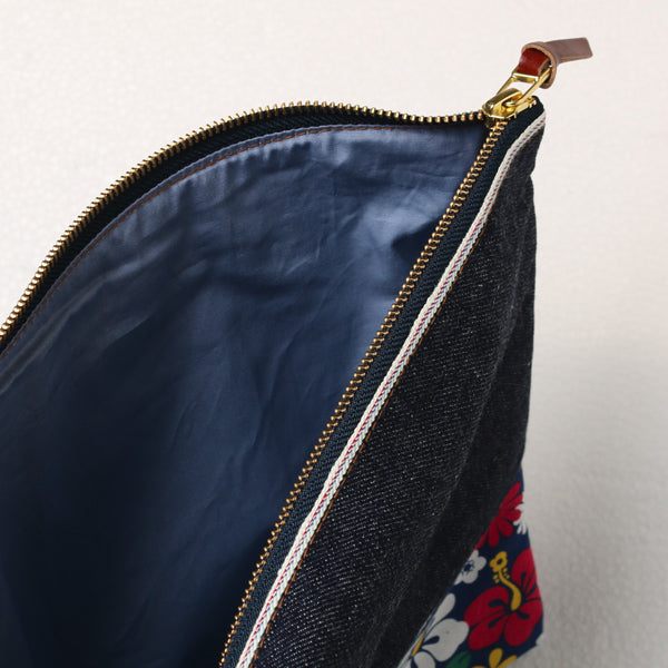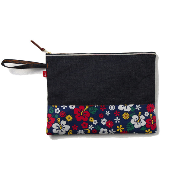DENIM FLOWER CLUTCH BAG