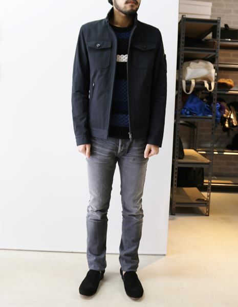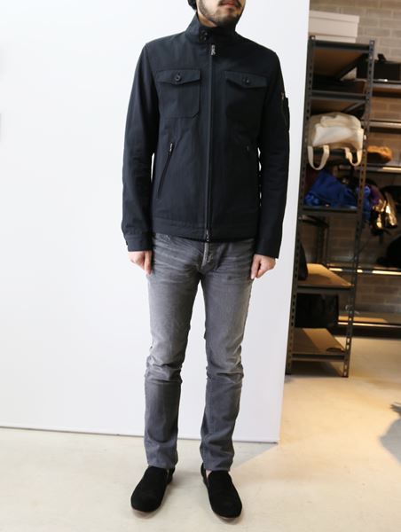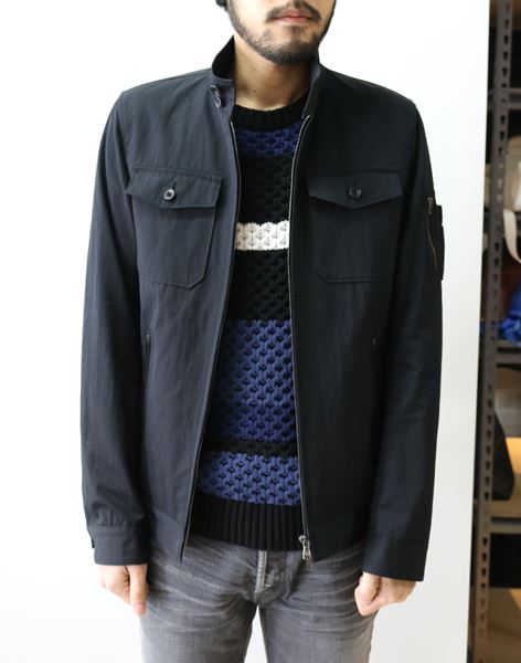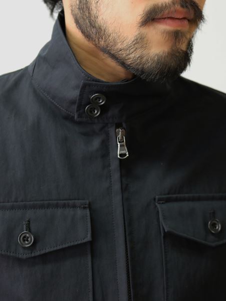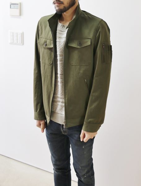春先からの気候に調度良い生地を使用した立ち襟タイプのミリタリーブルゾンで、