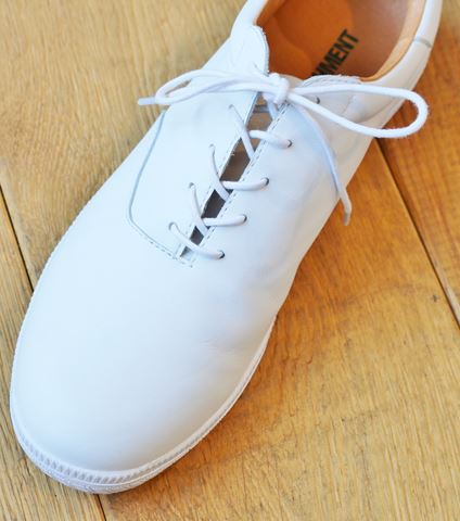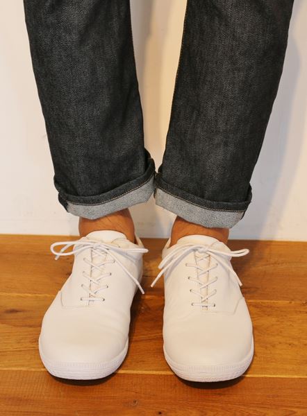 細めのシューレースにし全体の見た目をすっきりさせ、