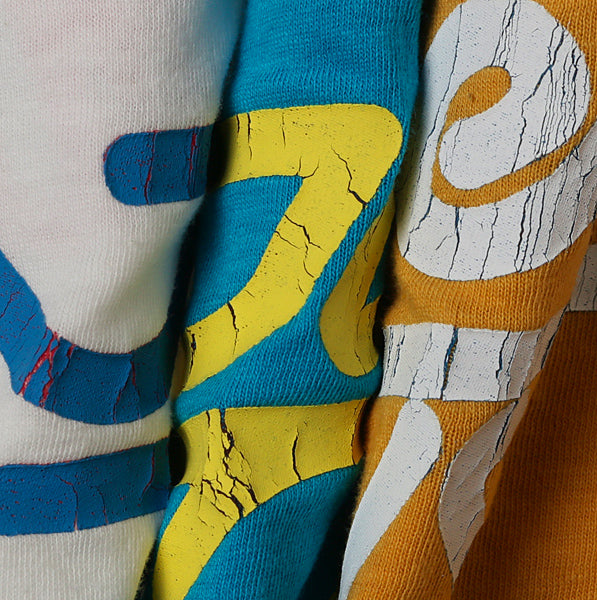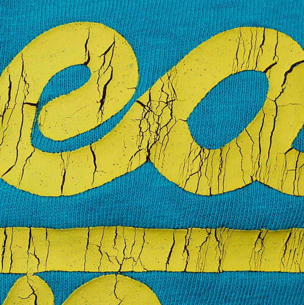 プリントが二層構造になっているため、着用によりクラッキングしていくとプリントカラーが徐々に変化していきます。