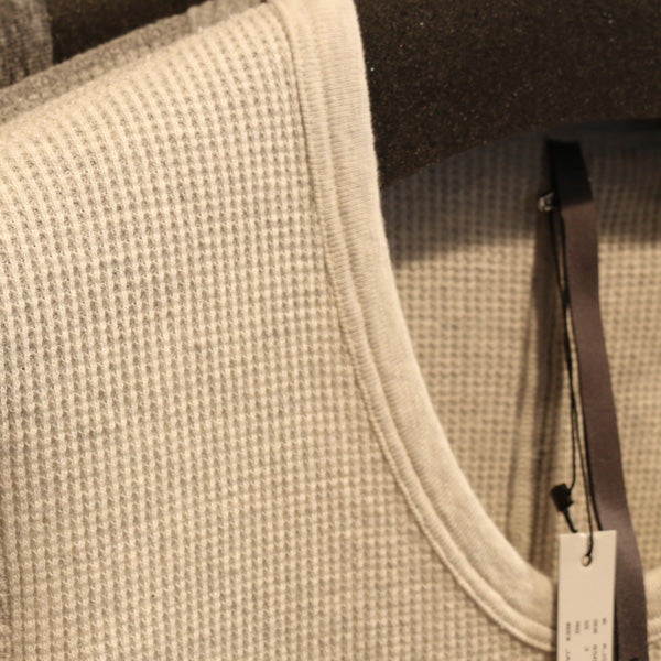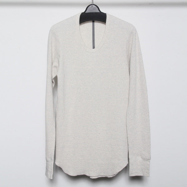 柔らかで風合いの良い杢感のあるワッフル素材を使用したUネックの長袖カットソーでございます。