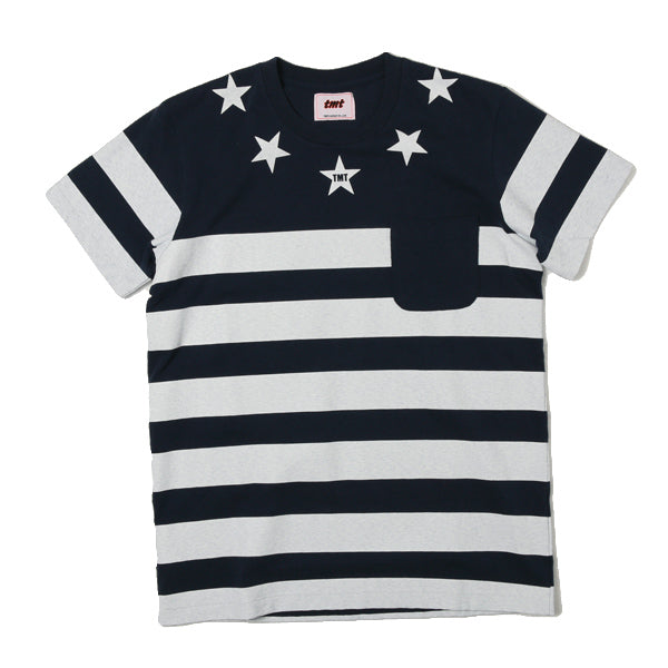 ボーダー&スターのプリントを落とし込んだインパクトあるTシャツ。
