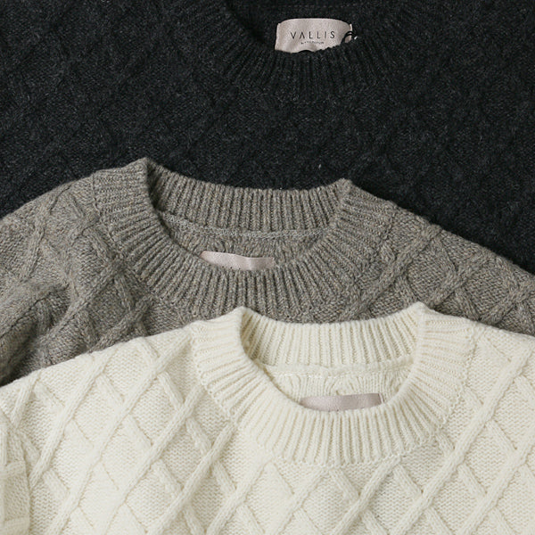 14番単糸のラムズウールを使用したアラン柄のシェトランドニットクルーです。