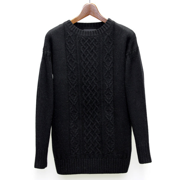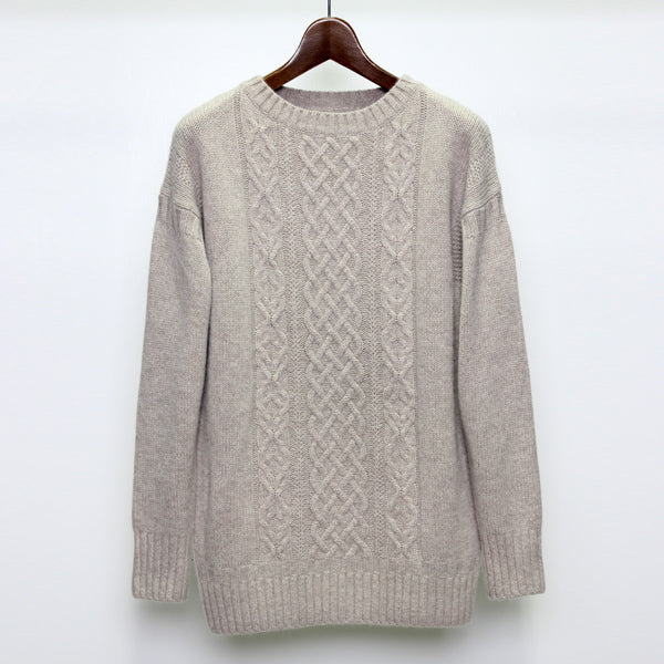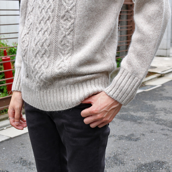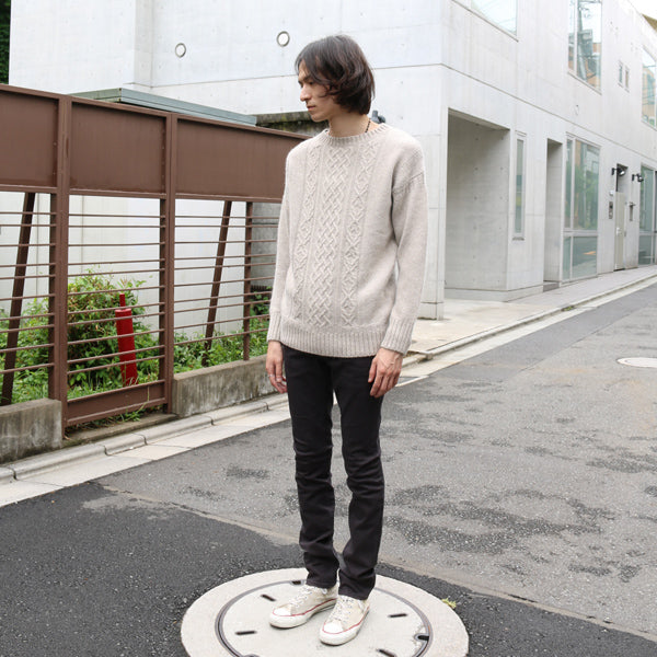 シンプルなケーブル編みのデザインですのでスタイリングしやすいのがポイントです。