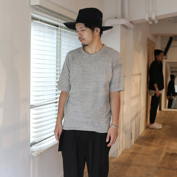 杢調の非常に柔らかでソフトな風合いのスウェット素材を使用した半袖タイプのクルーネックです。