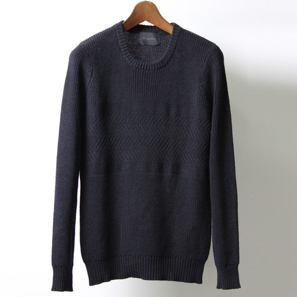 RAMIE COTTON ヘリンボーン切替ニットクルーネック