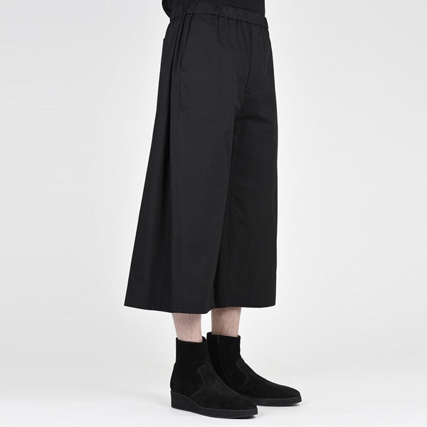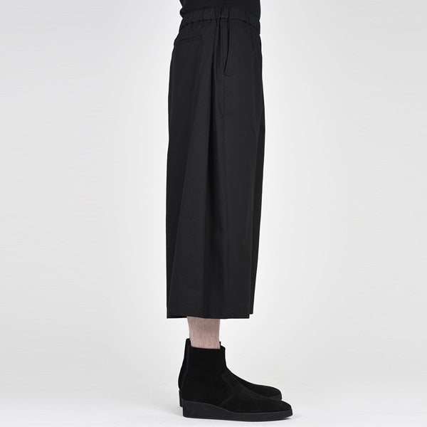 ほどよいハリ感を持った薄手のツイル素材を使用したクロップドワイドパンツ。