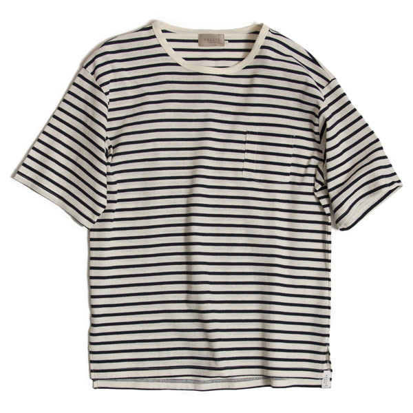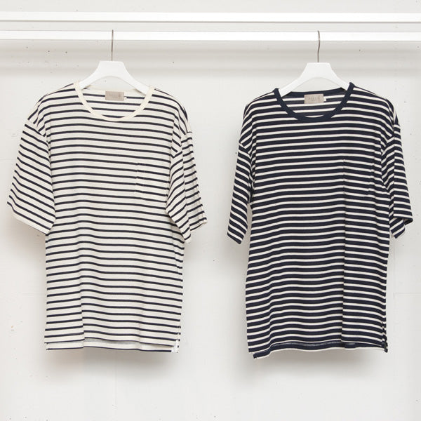 固すぎずしなやかな風合いのあるボーダードロップショルダーTEEです。