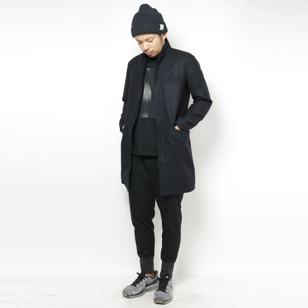 程良い緩さのあるシルエットで切り替え部分には亀田縞の生地を使用。