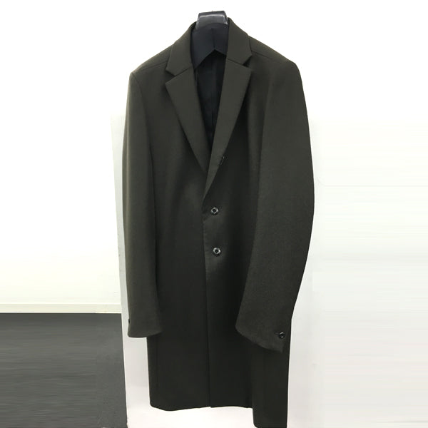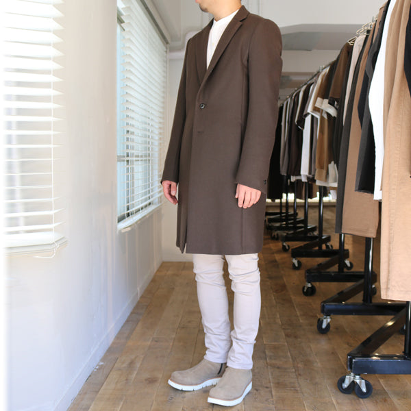 程良いハリ感のあるオフスケールメルトンを使用したチェスターコートで