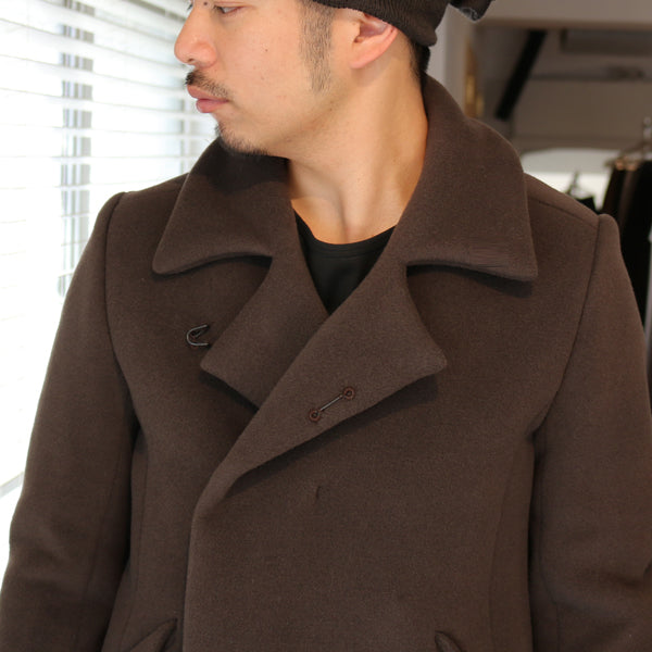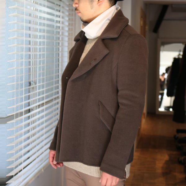 立体的で丸みのある襟周りと綺麗なシルエットが特徴のハイエンドなコートです。