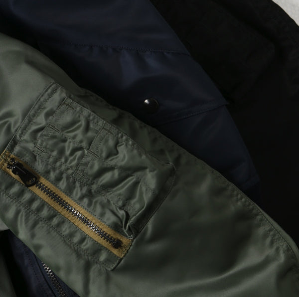 限られた工場でしか織る事のできないMARKAWAREオリジナルの66ナイロンツイルを使用したL-2Bです。