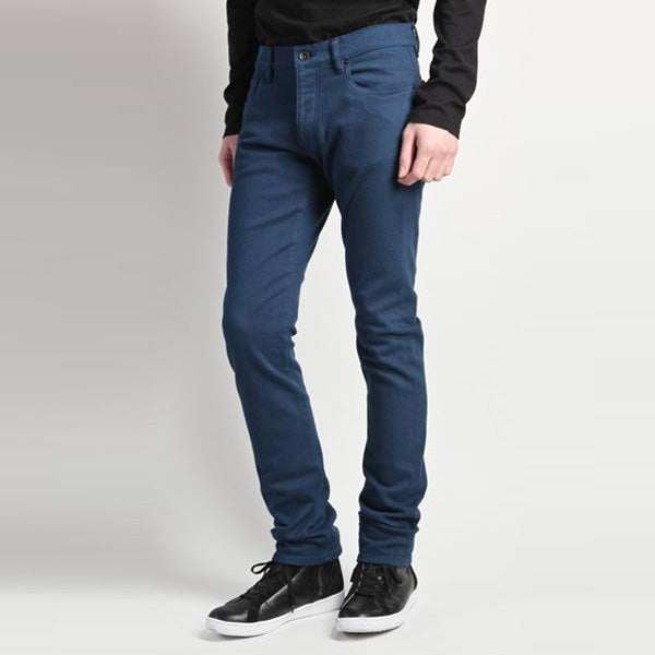ムラ糸ストレッチデニム スーパースリム製品染め。