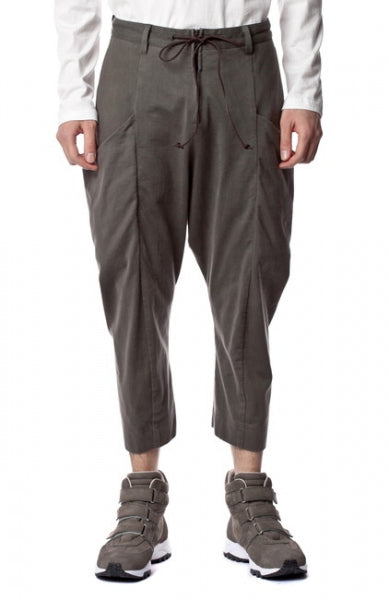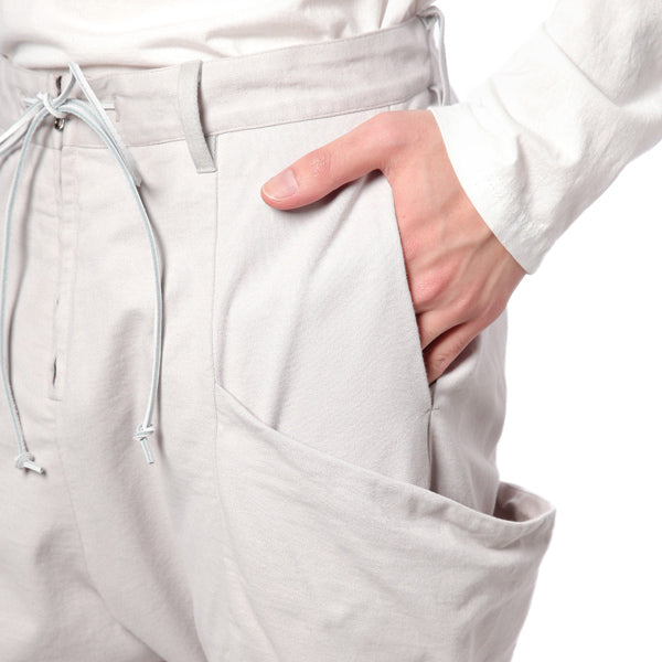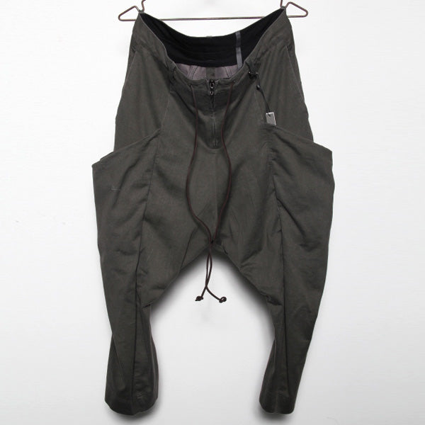 ウエスト部分はレザーコード、そしてフロントファスナー仕様や股上を深めにし
