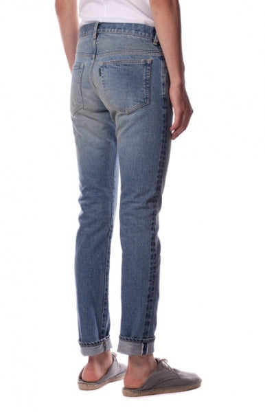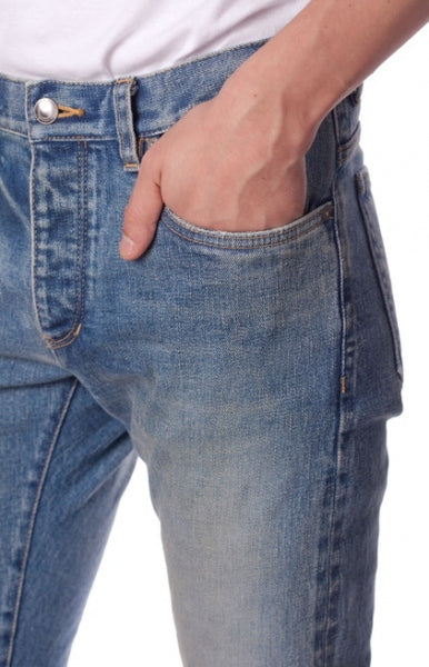 セルヴィッチ付きのデニムで、さらに細身でも動きやすいようストレッチ素材を混ぜております。