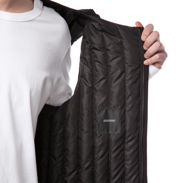 インナーダウンとしても着用できるよう襟無し仕様でシンプルなデザインに仕上げています。
