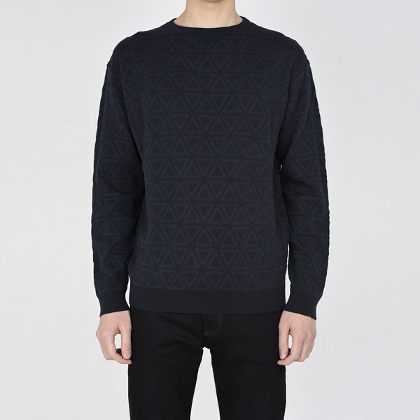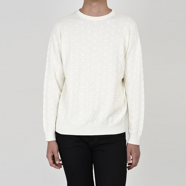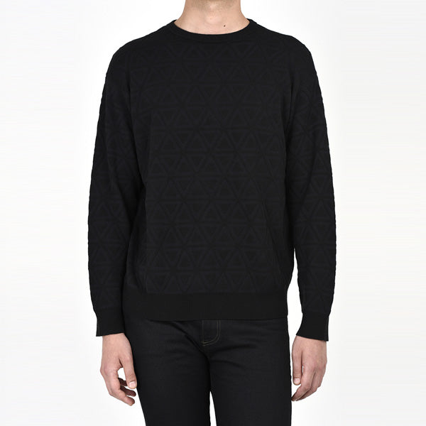 特殊な編み構造で浮き出たようなトライアングル柄を表現したニットです。