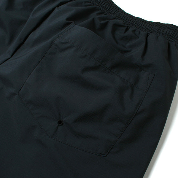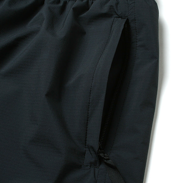 ウエストはゴム、ヒモで調整可能、サイドはジップポケット、右スソに鍵などに便利なループ付きポケット、腰内側にもポケット、バックポケットは水抜き穴付き、裏地はメッシュで速乾性に優れています。