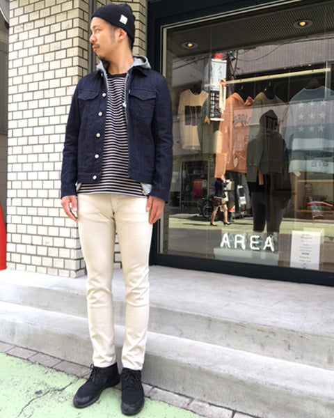 ストレッチ性のあるシンプルな細身シルエットのGジャンですので