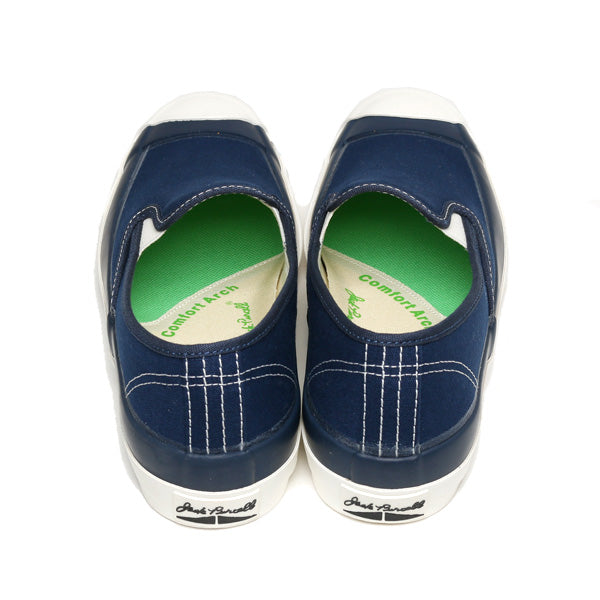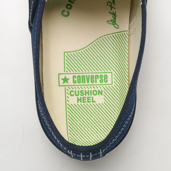 (1)ヒールパッチ: 1970年代の「JACK PURCELL」に見られる、凸凹感のあるロゴを立体成型で再現。