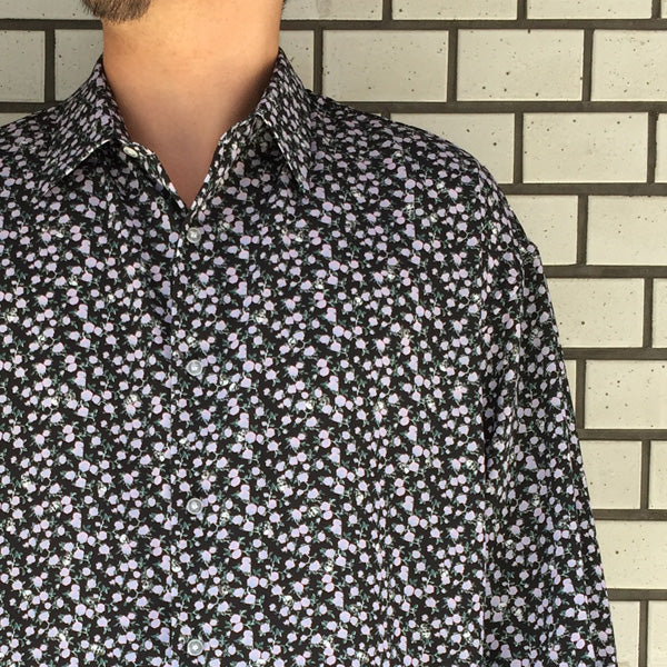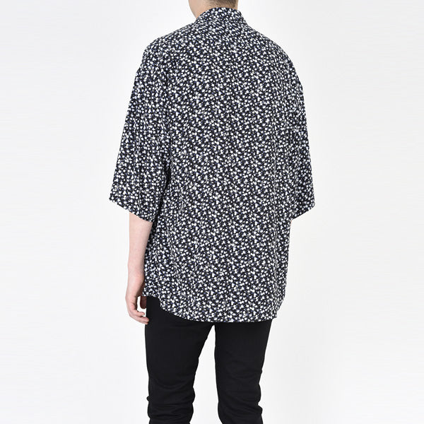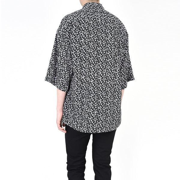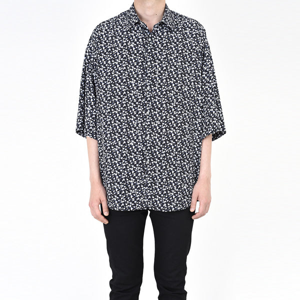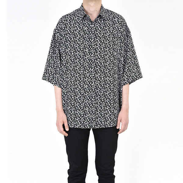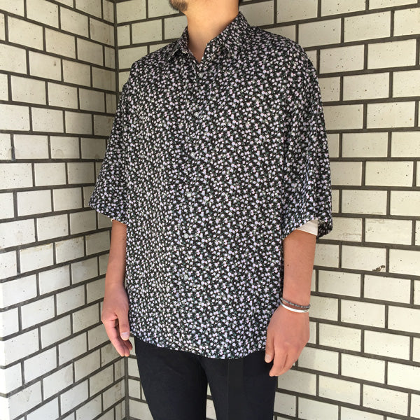 フロレット柄をプリントしたデシン素材を使用したレギュラーカラー半袖シャツ。