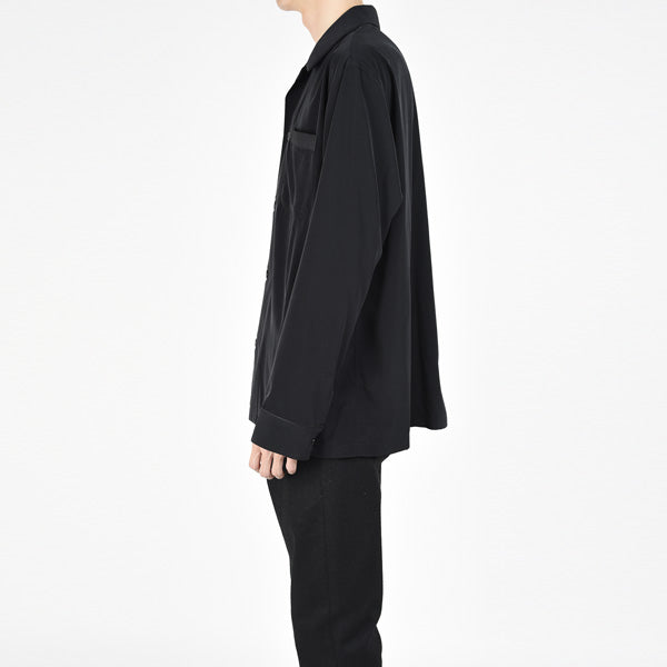 ドレープ性の強いデシン素材を使用したパジャマシャツ。