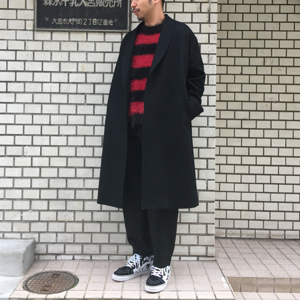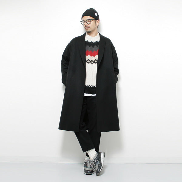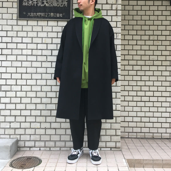 スラッシュポケットやボタンレスの仕様で楽に羽織れるコートです。