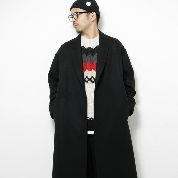 きれいな表面と柔らかさを持ったメルトン素材を使用したガウンコート。