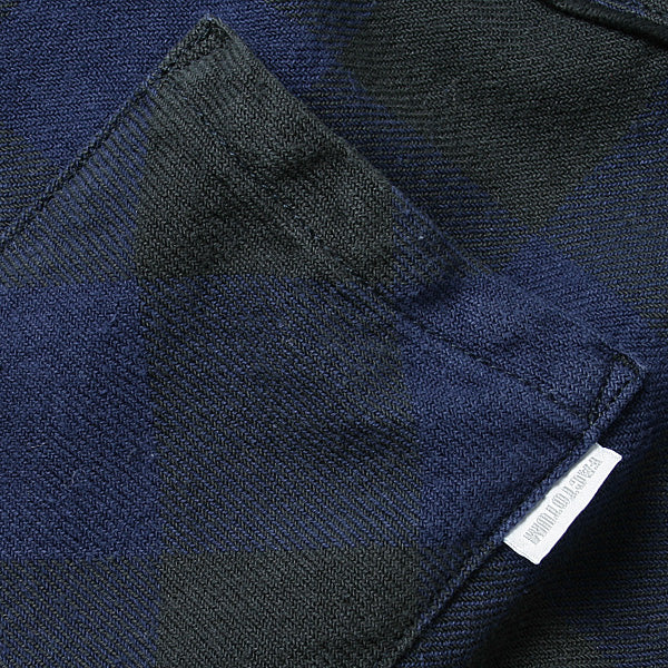 特有の色落ちが特徴のロープ染色糸を使用したインディゴチェック地に