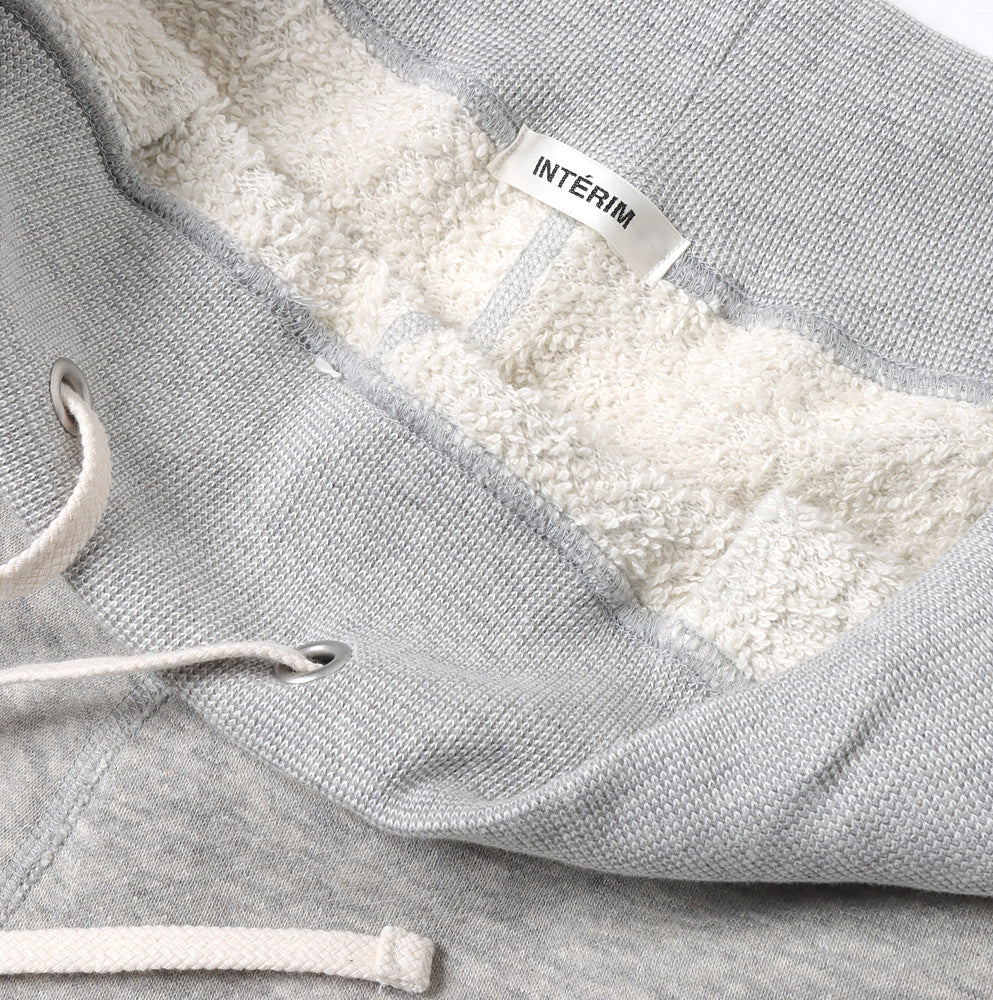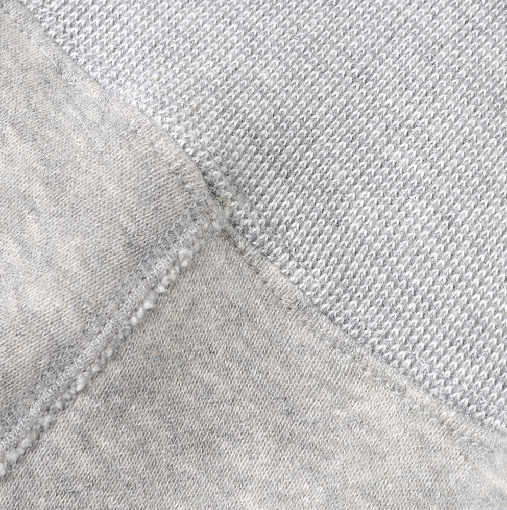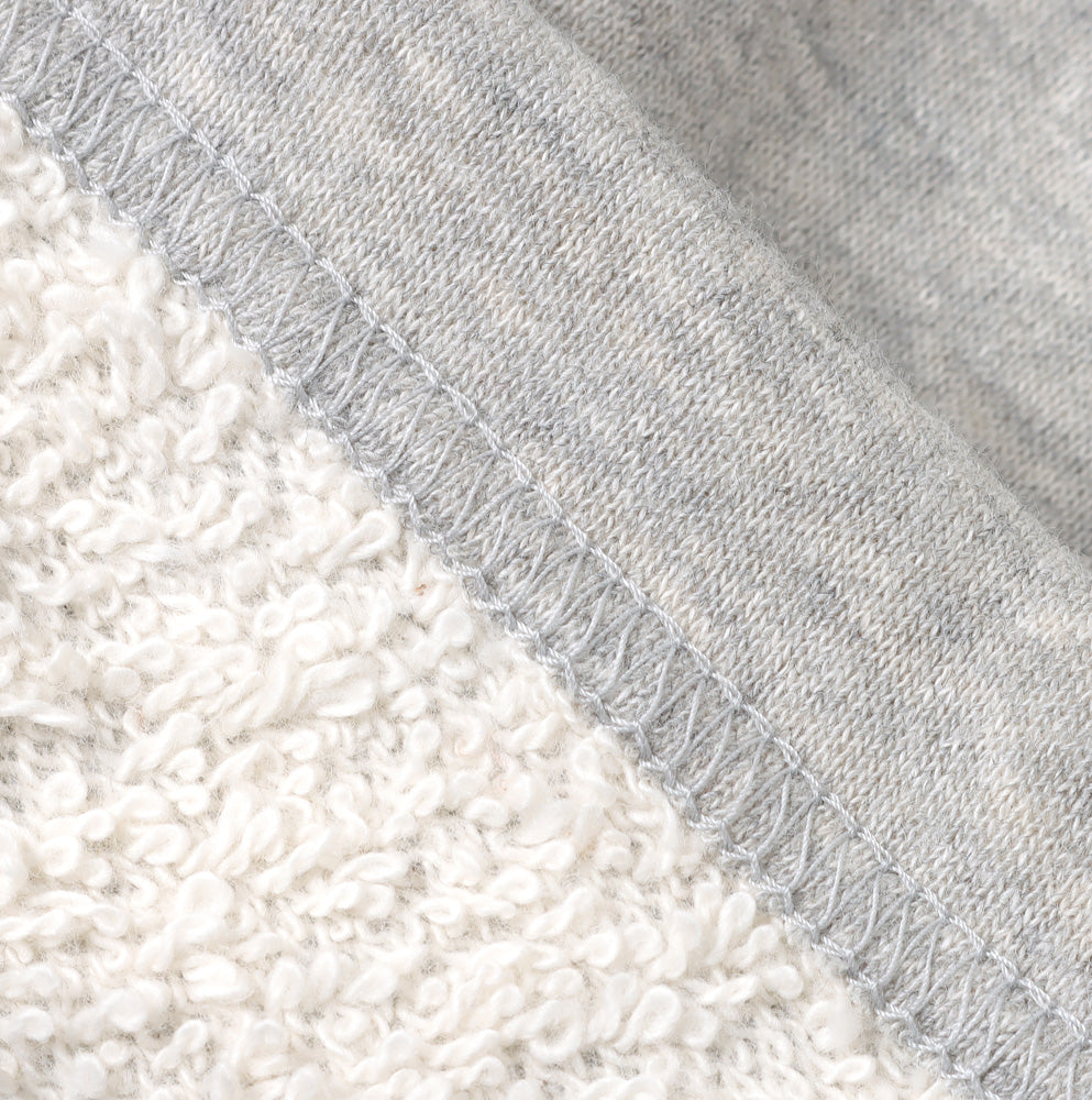 和歌⼭県で編み⽴てられた、1時間に1メートルしか編み⽴てることができない吊り編み⽣地。 吊り編み⽣地裏側を⻑いパイルと短いパイルの不規則な編み地することで、よりふっくらとしたボリューム感を表現した特殊な⽣地です。