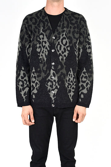 LEOPARD ARGYLE KNIT CARDIGAN