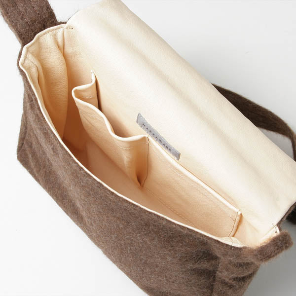 今シーズン、コートやニットで使用されておりますナチュラルアルパカを使用したバッグです。