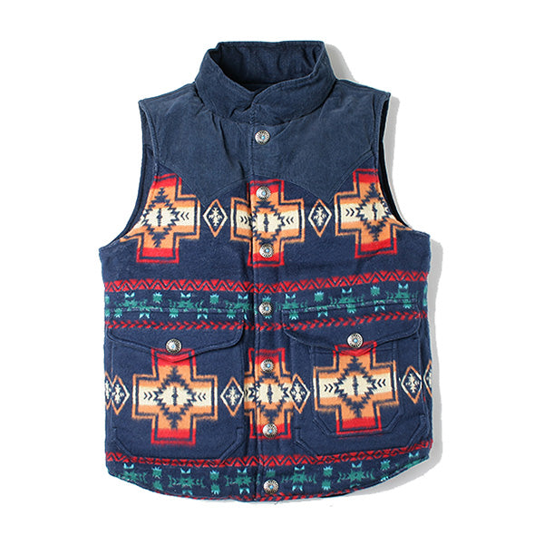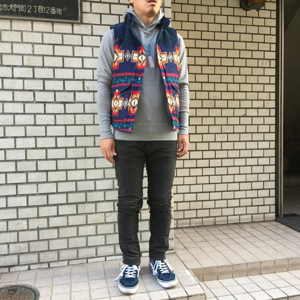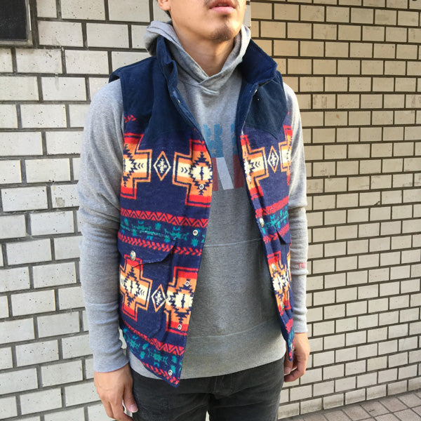 コーデュロイとの異素材切り替えと裏のネイティブジャガードブランケット生地との