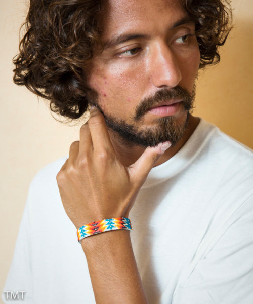 アメリカの先住民ナバホ族にオーダーしたオリジナルネイティブ柄ビーズバングルです。