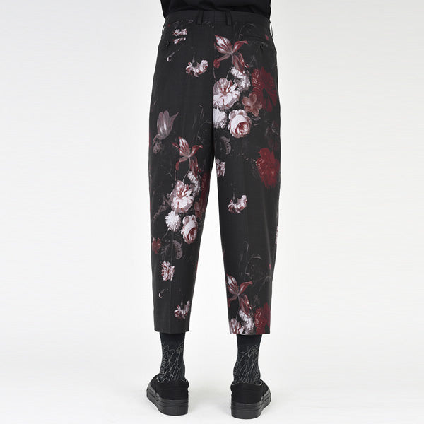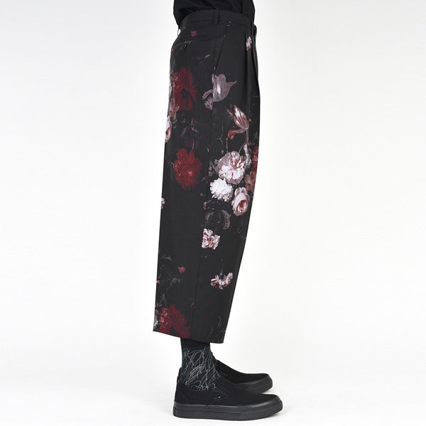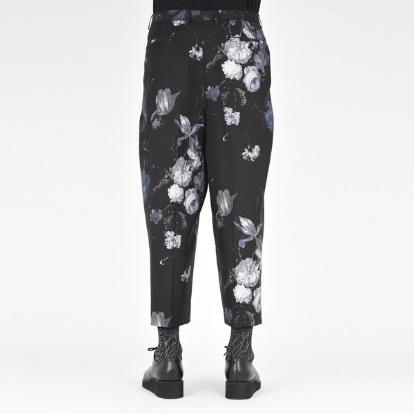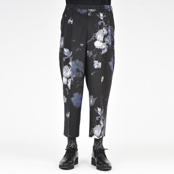フラワー柄をプリントしたウール素材を使用したクロップド丈の2タックワイドパンツ。