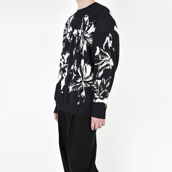 綿100%の極細糸を使用し、大きなユリの花を表現したハイゲージニットです。