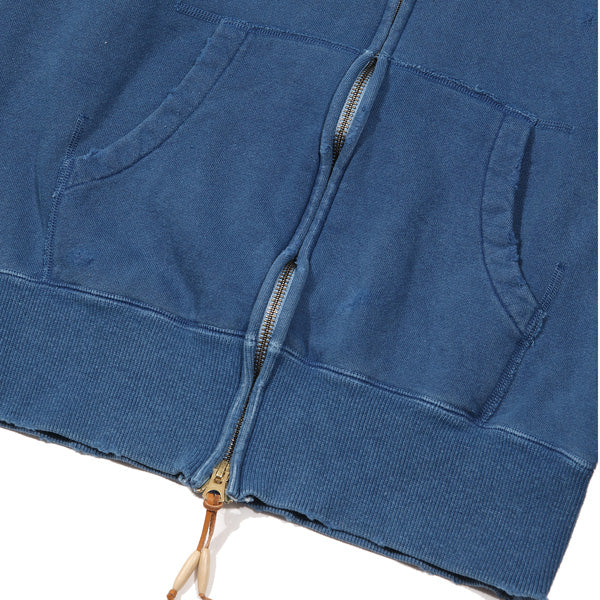 デニムの聖地 岡山県児島で染色から加工までヴィンテージ感を追及した、ジップアップパーカー。