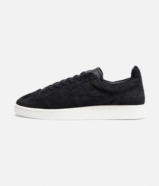 一枚仕立てのスエードアッパ ー/ キャンバスライニング / ヒールパッチにY-3のロゴ / Yohji Yamamotoのシグネチャー刺繍 / ラバーカップソール