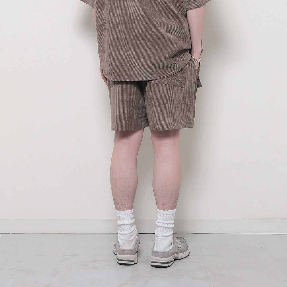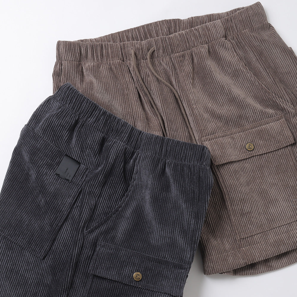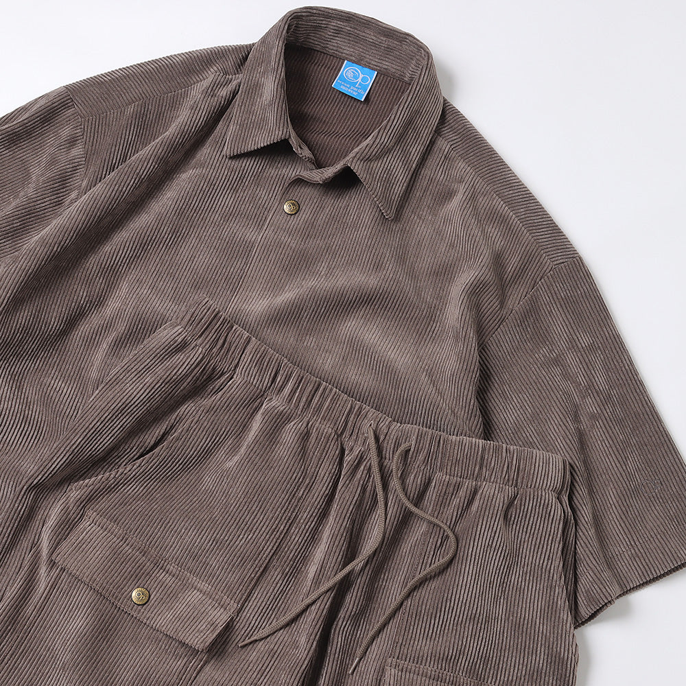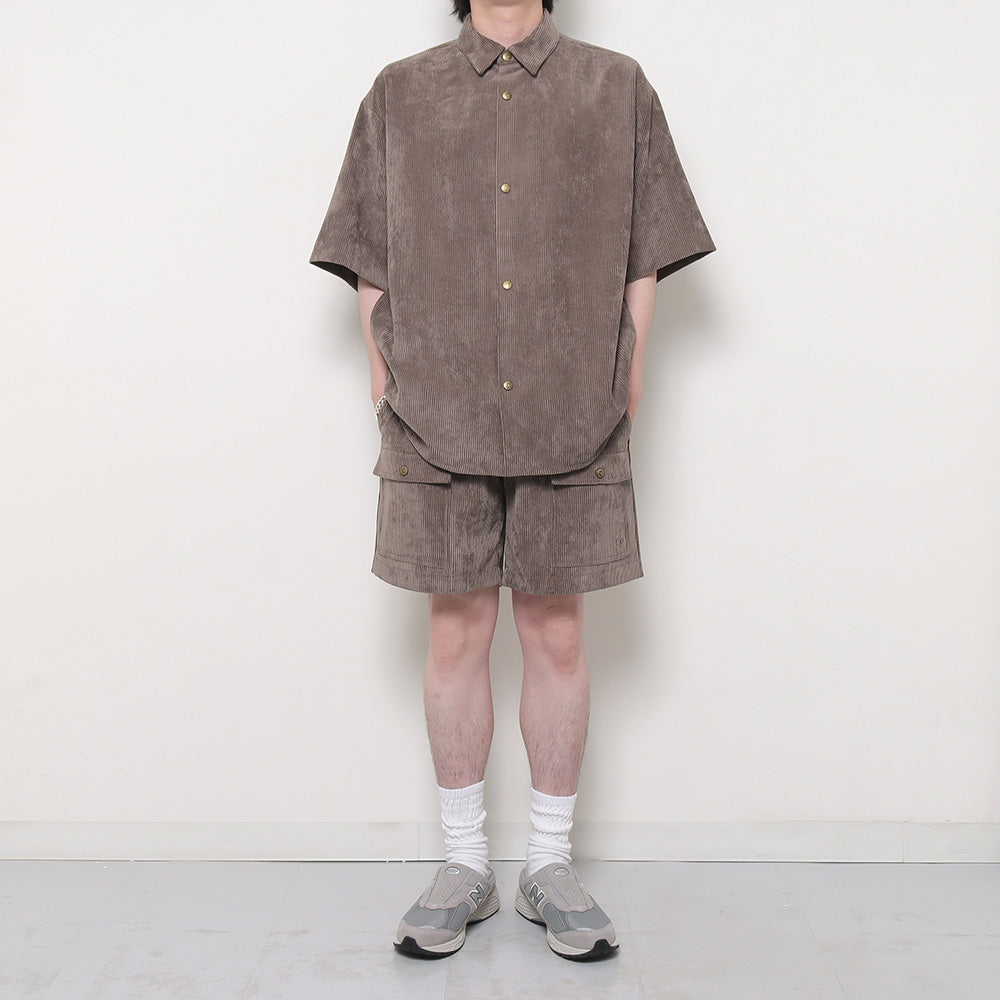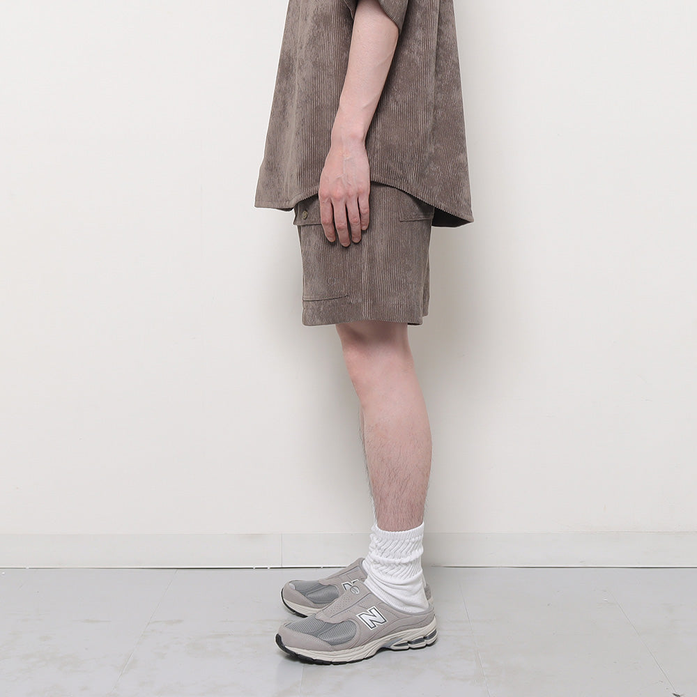 ・ストレッチ性に優れたコーデュロイを使用。ポリエステルでありながらマットで、ソフトなテクスチャーが特徴。速乾性に優れシワになりにくいイージーケア素材。