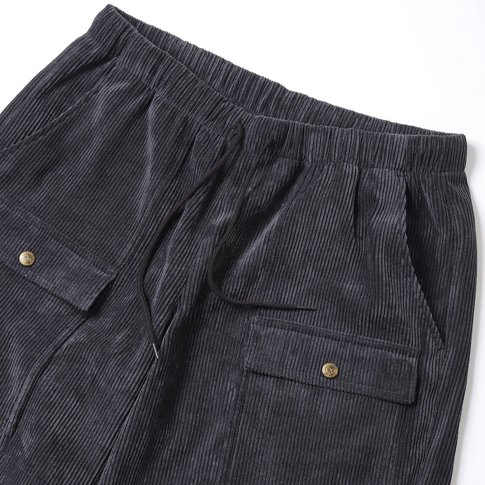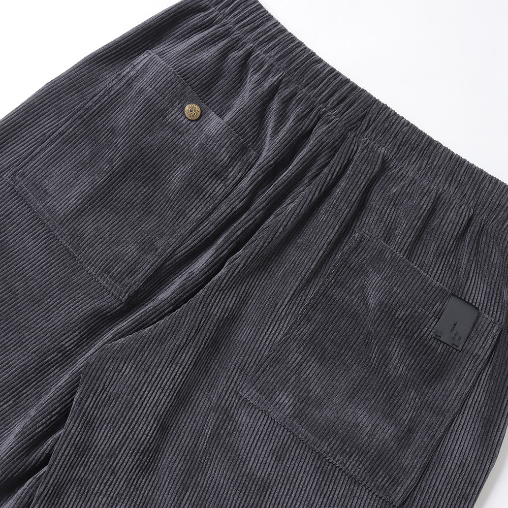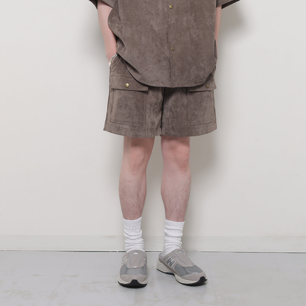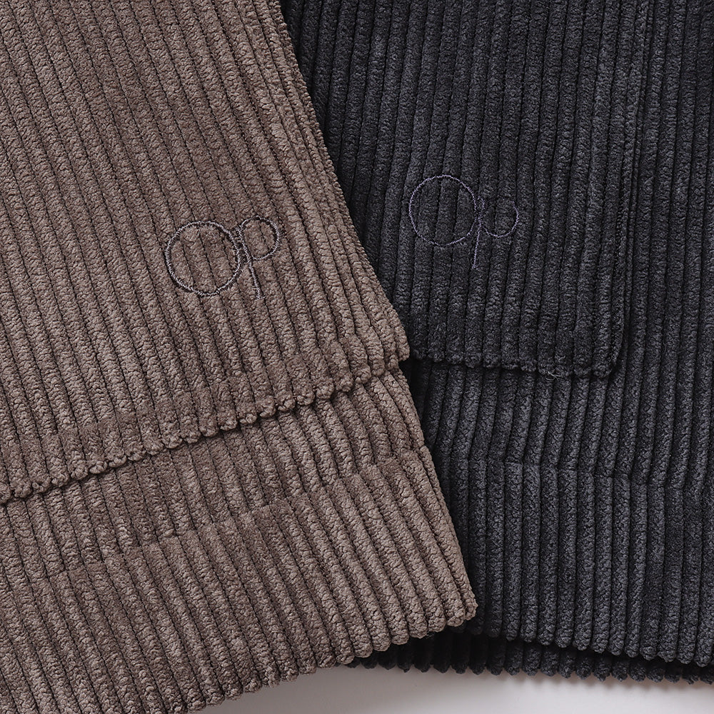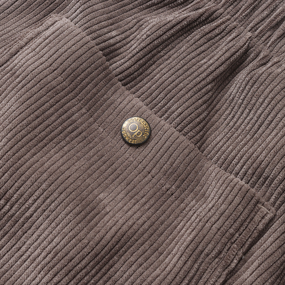 ・ストレッチ性に優れたコーデュロイを使用。ポリエステルでありながらマットで、ソフトなテクスチャーが特徴。速乾性に優れシワになりにくいイージーケア素材。