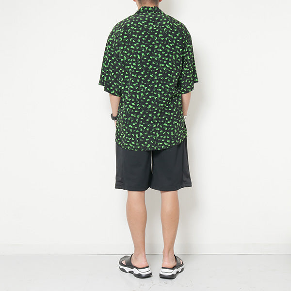 ジャージ素材を使用したショート丈の3タックワイドパンツ。