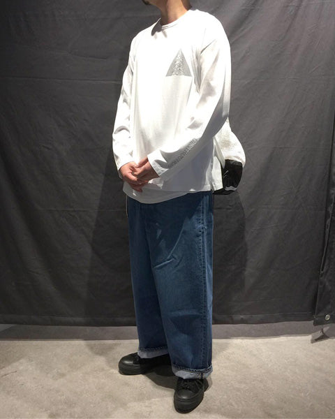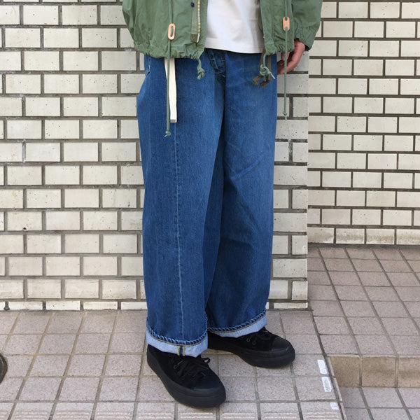 やや薄手のデニムですので程好い柔らかさがあり、ワイドなシルエットでも履き心地に優れております。