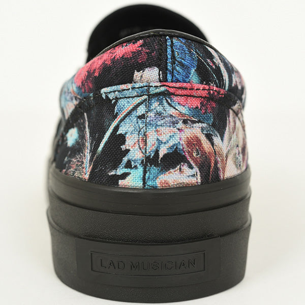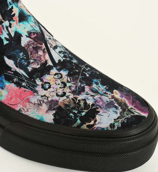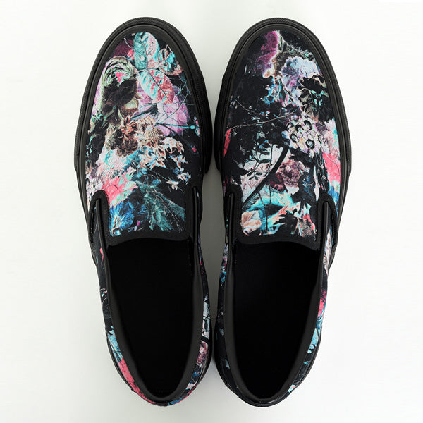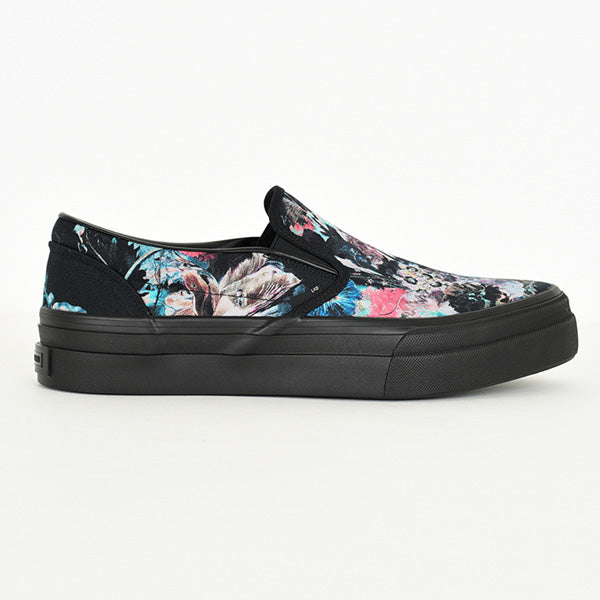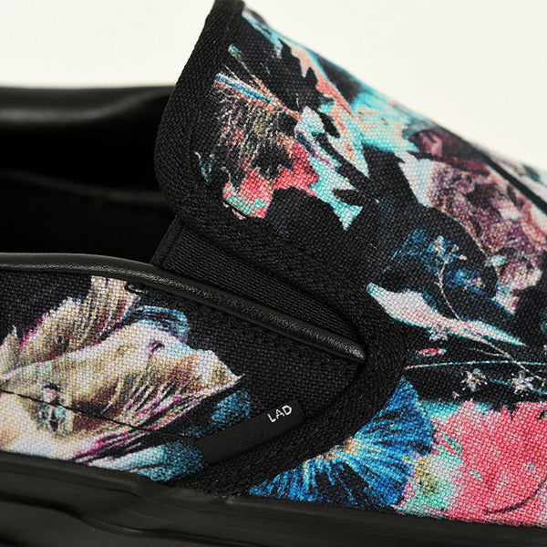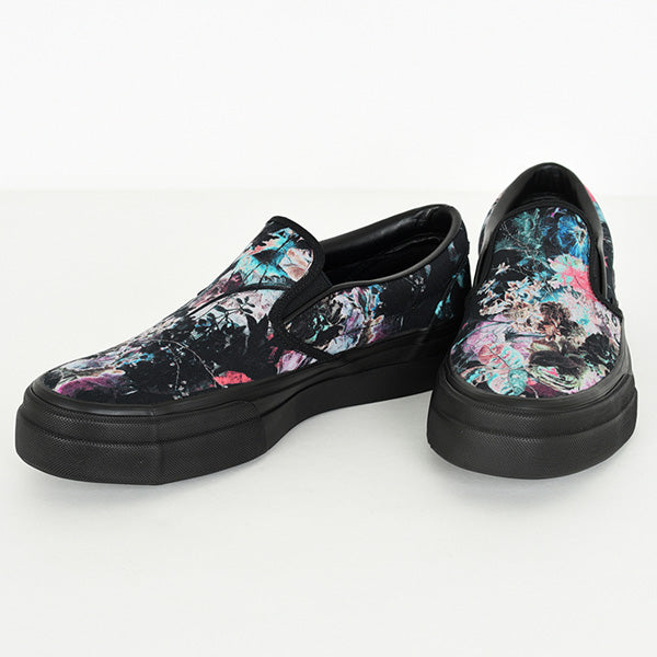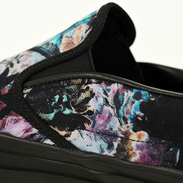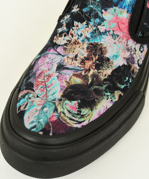 フラワー柄をプリントしたキャンバス素材を使用したスリッポン。