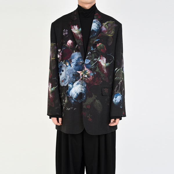 フラワー柄をプリントしたウール素材を使用したビッグ1Bジャケット。